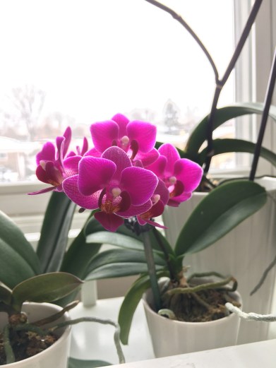 Mini Orchid February 24, 2018July 3, 2018 | amph0ne My mini orchid is in full bloom, great to see some color on a gray winter day.
